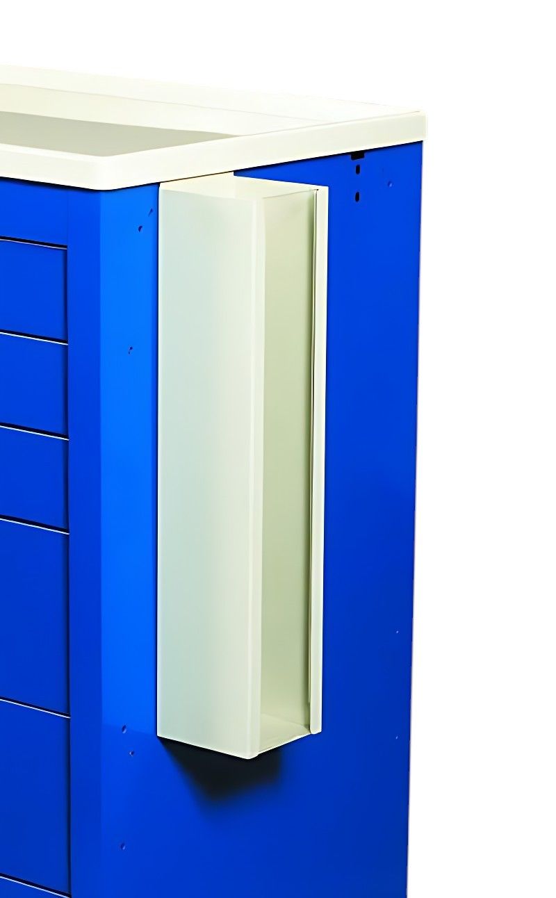 Catheter holder with clear front is intended for use with MPD style medical carts.
