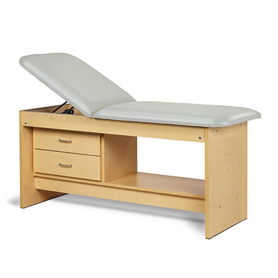 - Laminate shelf and two drawers with easy-clean, plastic interiors